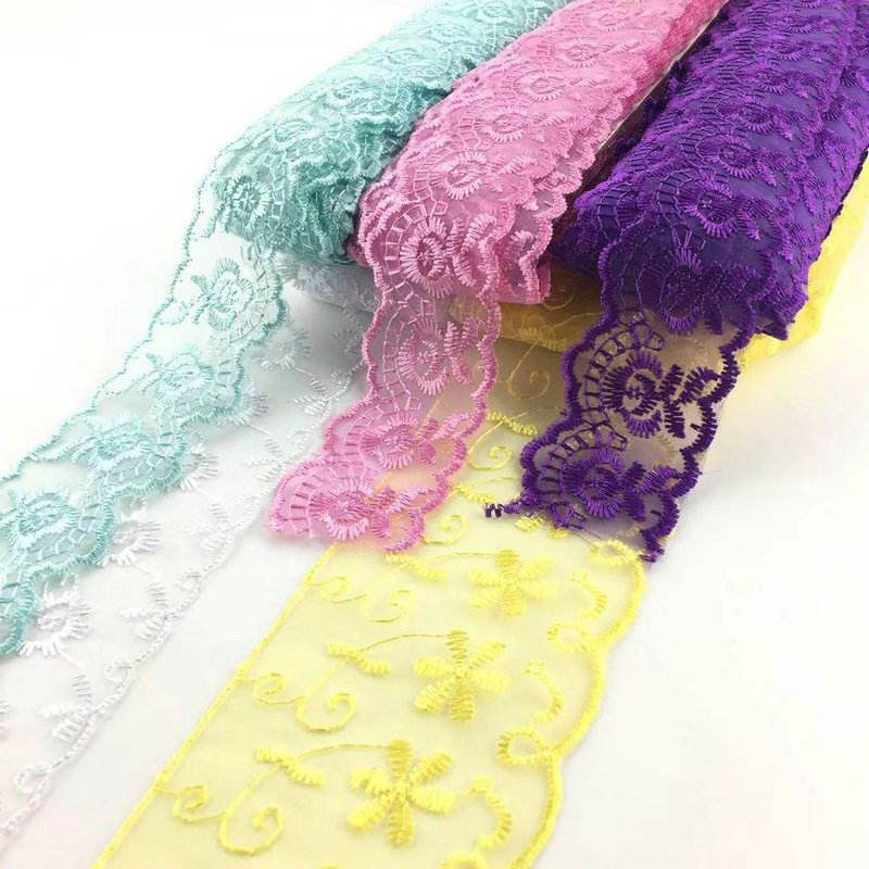 Uusin muotoilu monivärisiä organza pitsi trimmi kirjonta organza pitsi tukkumyynti