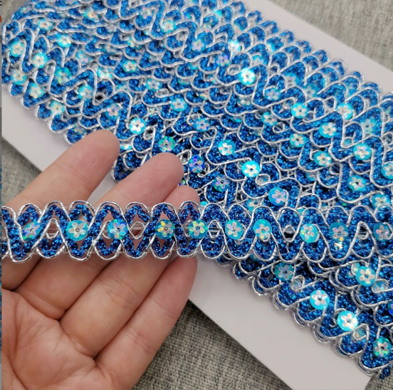 Vaatteiden tarvikkeet Kulta- ja hopea metallinen reunapitsi.