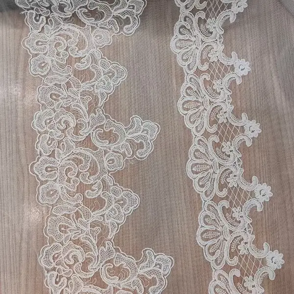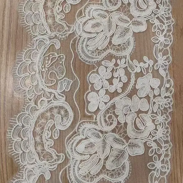 Muodikas ja hieno mesh -polyesteribrodeerattu pitsi naisten vaatteille, joissa on monimutkaisia brodeerattuja kukkakuvioita. Täydellinen tyylikkäille hihoille, pukeutumispeittoihin ja romanttisiin puseron yksityiskohtiin. Tämä kevyt, mutta kestävä kangas tarjoaa siro verhoa ja ajatonta vetovoimaa. Nykyaikaiset mallit toimivat kauniisti sekä muodollisiin että rentoihin vaatteisiin. Saatavana klassisina valkoisina, mustina ja pehmeinä sävyinä. Konepestävä helppoa hoitoa varten. Ihanteellinen DIY -muotille, morsiamen aksentteille ja putiikkivaatteille. Premium -kangastoimittajien myynti.