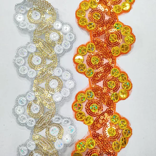 Kirjonta moniväriset paljetit Mesh -pitsien leikkaaminen on kaunis ja monipuolinen materiaali, jota voidaan käyttää moniin projekteihin. Se koostuu silmäkankaasta, joka on peitetty värikkäillä paljetteillä ja kirjonnalla. Tämän tyyppistä trimmausta käytetään usein ripauksen kimalluksen ja glamourin lisäämiseen vaatteisiin, asusteisiin ja kodinsisustustuotteisiin. Ammattitaitoisena valmistajana haluaisimme tarjota sinulle kirjonta monivärisiä paljeteja mesh -pitsikorjausta. Ja tarjoamme sinulle parhaan myynnin jälkeisen palvelun ja oikea-aikaisen toimituksen.