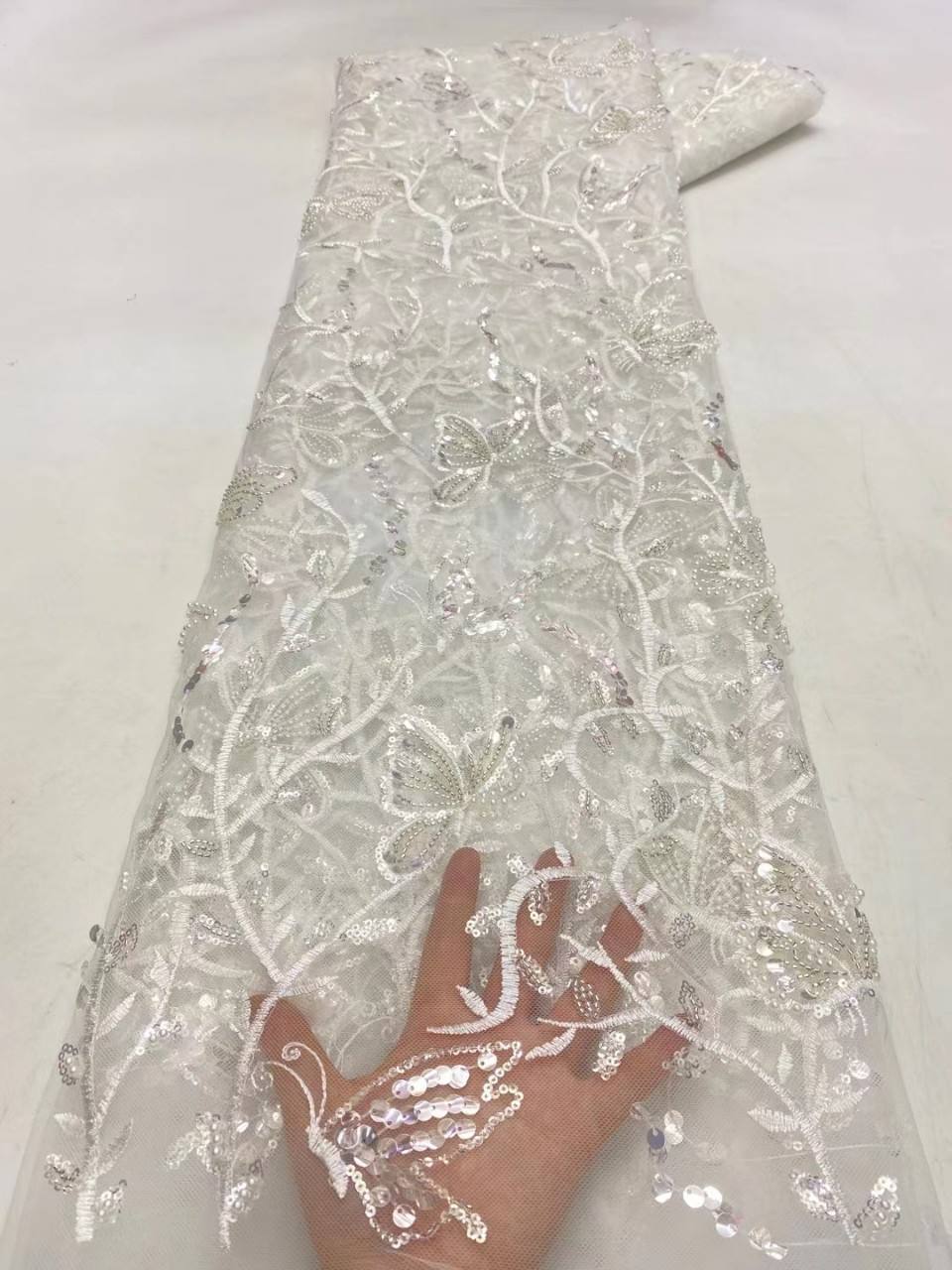Värikäs hääpitsi kangas 3D-perhonen helmillä varustettu brodeerattu telakat, joissa on kolmiulotteinen 3D-perhonen helmillä varustettu kirjontasuunnittelu, se on ylellinen ja hieno, erityisesti räätälöity huippuluokan hääpukuihin ja iltapukuihin. Jokainen piha on hienosti brodeerattu paljeteilla ja helmikerroksilla. Se on kevyt ja hengittävä, sopiva morsiusverhojen, pukeutumiskoristeiden tai iltapukujen valmistukseen.