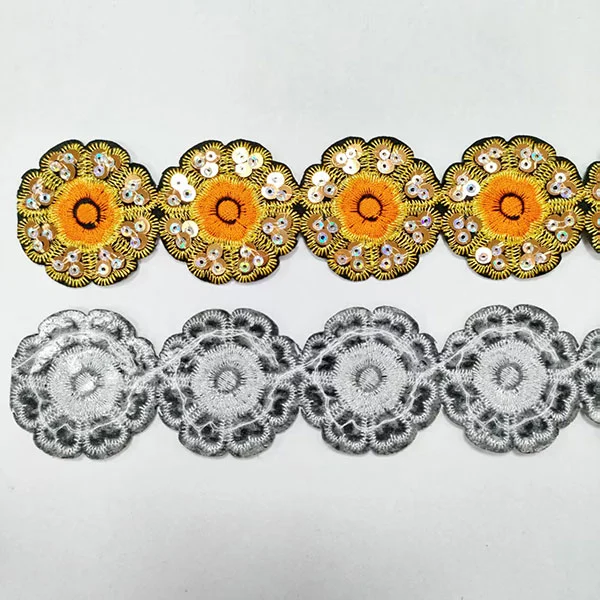 Sequins -vaatteiden tarvikkeet pitsin leikkaus takaosalla on eräänlainen koristeellinen verhoilu, jossa on paljetit, pitsi ja tarttuva tarttuva tausta. Tämän avulla on helppo liittää vaatteisiin, asusteisiin tai muihin projekteihin ilman ompelua. Voit olla varma, että ostat paljetit vaatteet-asusteet pitsikorjaus tehtaaltamme ja tarjoamme sinulle parhaan myynnin jälkeisen palvelun ja oikea-aikaisen toimituksen.